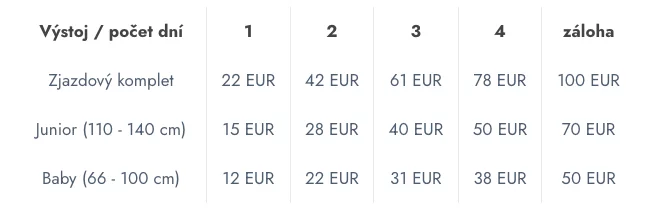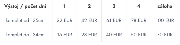 Požičanie lyžiarskeho kompletu, ktorý okrem lyží pozostáva z lyžiarok a paličiek.